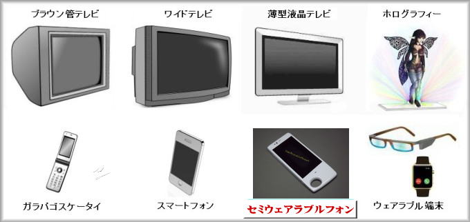 セミウェアラブルモバイルは、機構を伴わないデザイのみによる機能ですので、自動車のように、次々とモデルチェンジした新商品を低予算で送り出すことが出来ます。