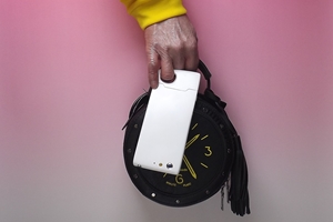 セミウェアラブルフォンは、たとえ男性であっても、自然に指を揃えた気品ある持ち方になってしまいます。